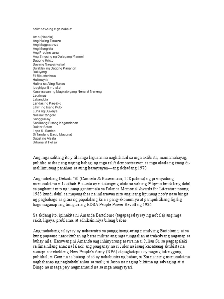 Mapukaw ang damdamin ng mambabasa. Mga Halimbawa Ng Nobela Ng Pinoy. Mapalaganap ang diwa ng Katolisismo.