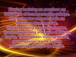 Naisip ni Fak na gantihan ang mga ito ngunit wla siyang lakas na gawing ito kaya naisip. What is the Summary of paghuhukom by lualhati bautista. Paghuhuk0mang paghuhukom ay ang pagdating ni kristo sa mundo.
