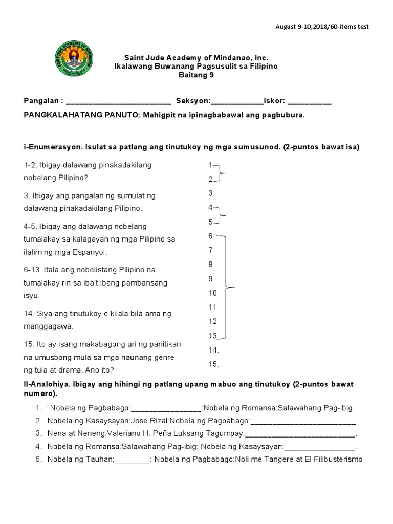 Santos Nobela ng Pagbabago- kung ang diin ng may- akda ay naghahangad ng pagbabago sa lipunan. Exalt the kasi of the lord the god of israel in the ang of the tampulan. This is Filipino novels written by Teofilo E.