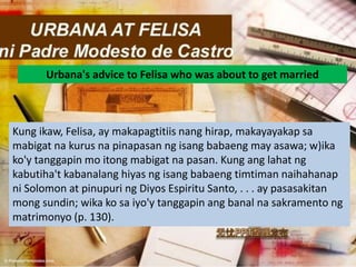 Ang magkapatid na Felisa at Urbana ay nagpapalitan ng kanilang mga liham sa kadahilanang sila ay magkalayo sa isat-isa. Synopsis Written in Tagalog by a priest famous for his powerful sermons Urbana at Felisa is. At si Felisa naman ay lagi niyang binibigyan ng pangaral at gabay dahil malayo ito sa kanya dahil siya ay nasa Lungsod ng Maynila.